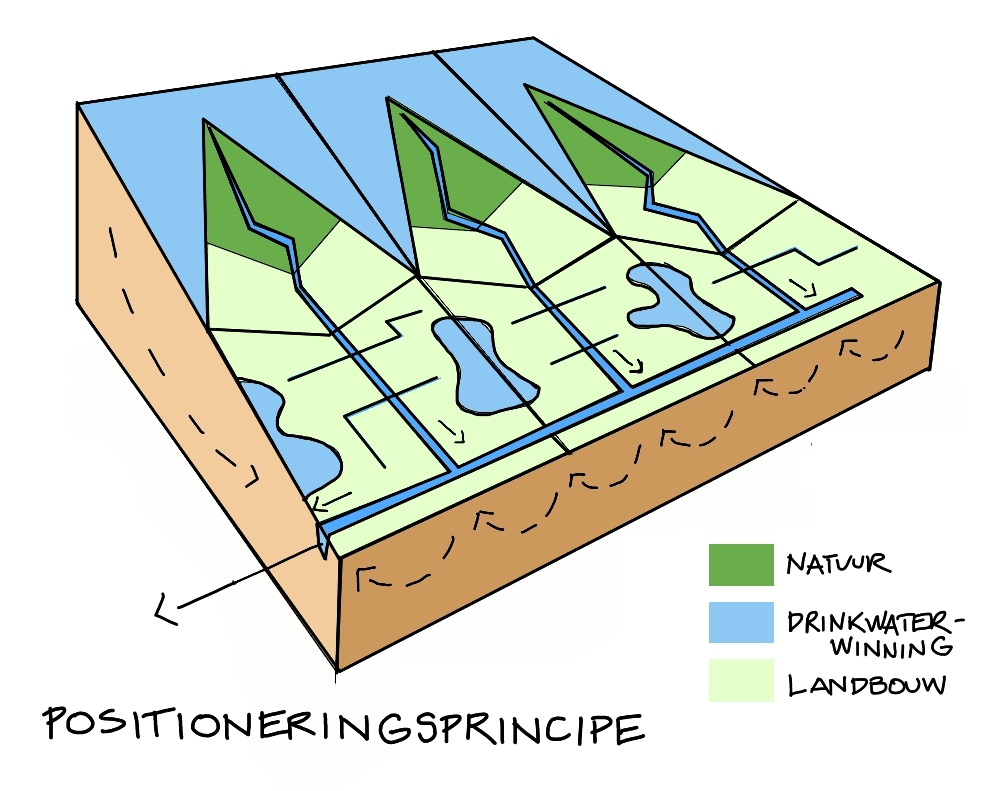 Met de positioneringsbenadering geleiden we het veranderend grondgebruik naar de best passende plekken. Zo worden functies die hoge eisen stellen aan de waterkwaliteit bovenstrooms van vervuilende functies gesitueerd.
