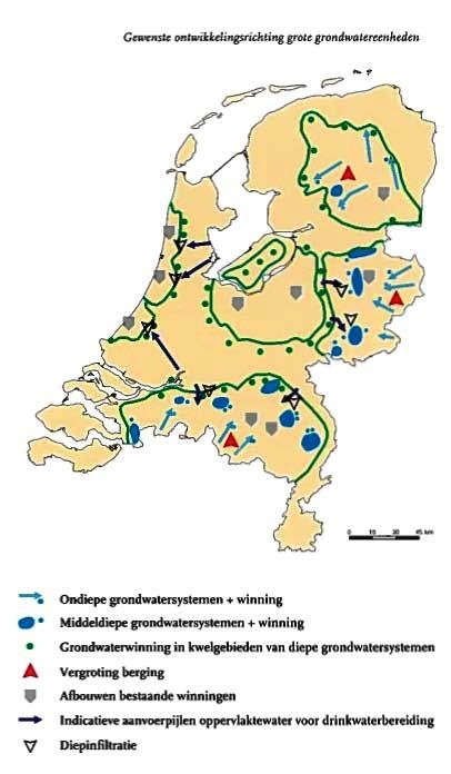 In de studie ‘Waterwinnen met kwaliteit’ (1997) zijn twee contrasterende beleidsopties voor de zoetwatervoorziening uitgewerkt. De eerste gaat uit van het duurzaam winnen van zoveel mogelijk grondwater. Dit betekent dat de grote grondwatereenheden in hun interne samenhang moeten worden benaderd, bescherming van een grote oppervlakte en flinke verschuivingen in het ruimtegebruik (natuurontwikkeling). In deze studie werd wel aangegeven dat er grote onzekerheden bestaan over de op deze wijze te winnen hoeveelheid. In de tweede optie is het accent gelegd op de grote wateren. Het gebruik van het IJsselmeer blijft hierbij erg belangrijk, zoals in het Nationaal Waterplan (2009) is aangegeven.