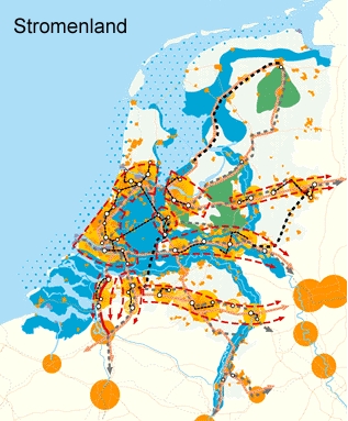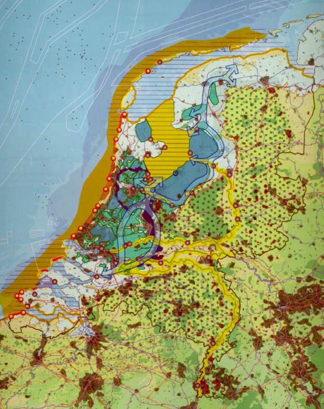 In de Nota Landelijke Gebieden wordt aan water geen aandacht geschonken. In de Vierde Nota verschijnt Nederland-Waterland in de vorm van de twee assen: de blauwe pijl en het rivierengebied (verwijzen). In de Vierde Nota Extra wordt het watersysteem de onderlegger van het beleid voor het landelijk gebied en krijgen de grote wateren een functieaanduiding (natuur, combi).