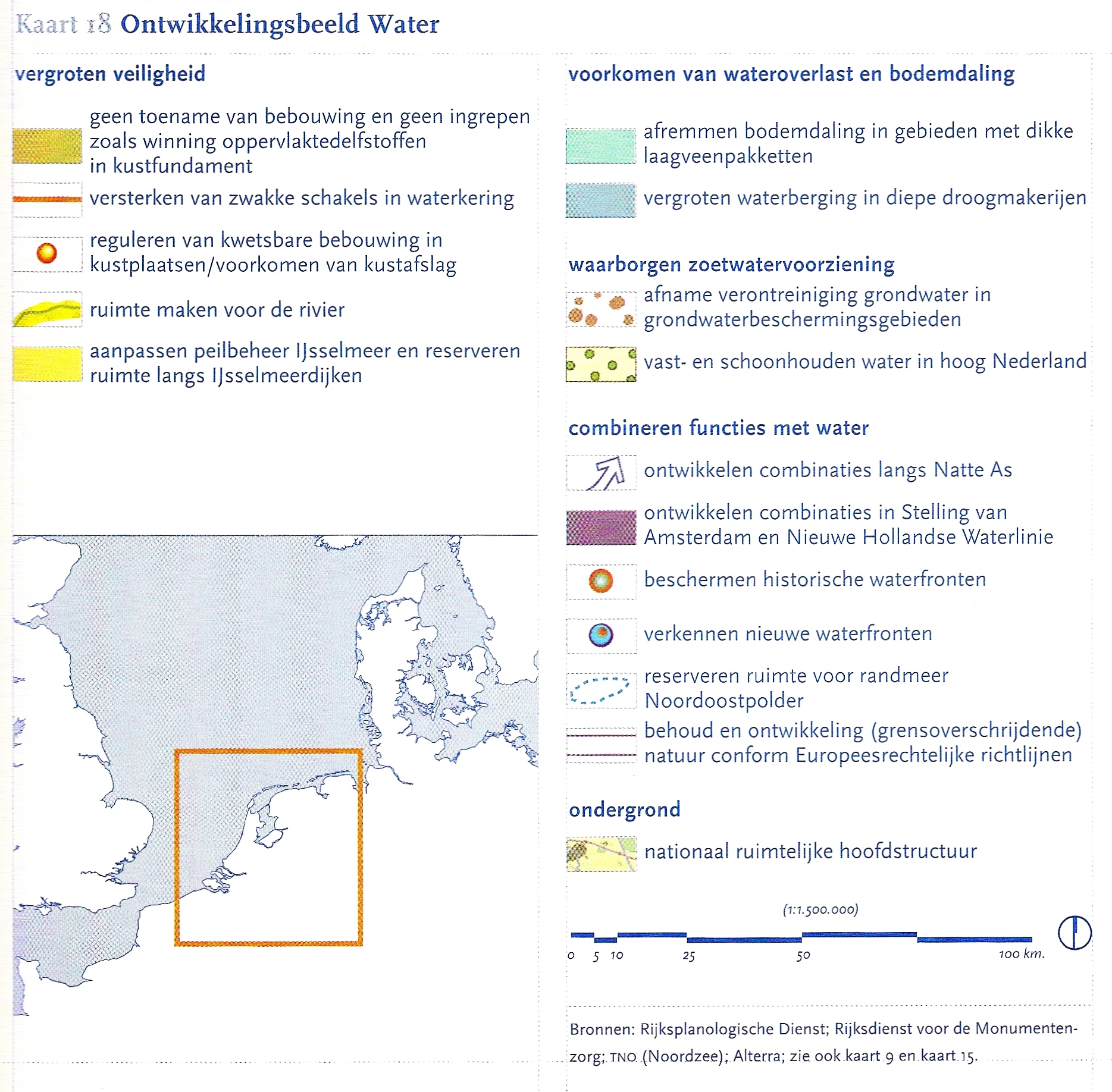 Op nationaal niveau kreeg het water geleidelijk een duidelijker, steeds breder ingevulde plaats in het ruimtelijk beleid. In de meest recente beleidsnota's zien we in het ruimtelijk beleid een inperking tot de opgaven rond waterveiligheid en de zoetwatervoorziening terwijl in het waterbeleid een breed streefbeeld wordt neergezet.